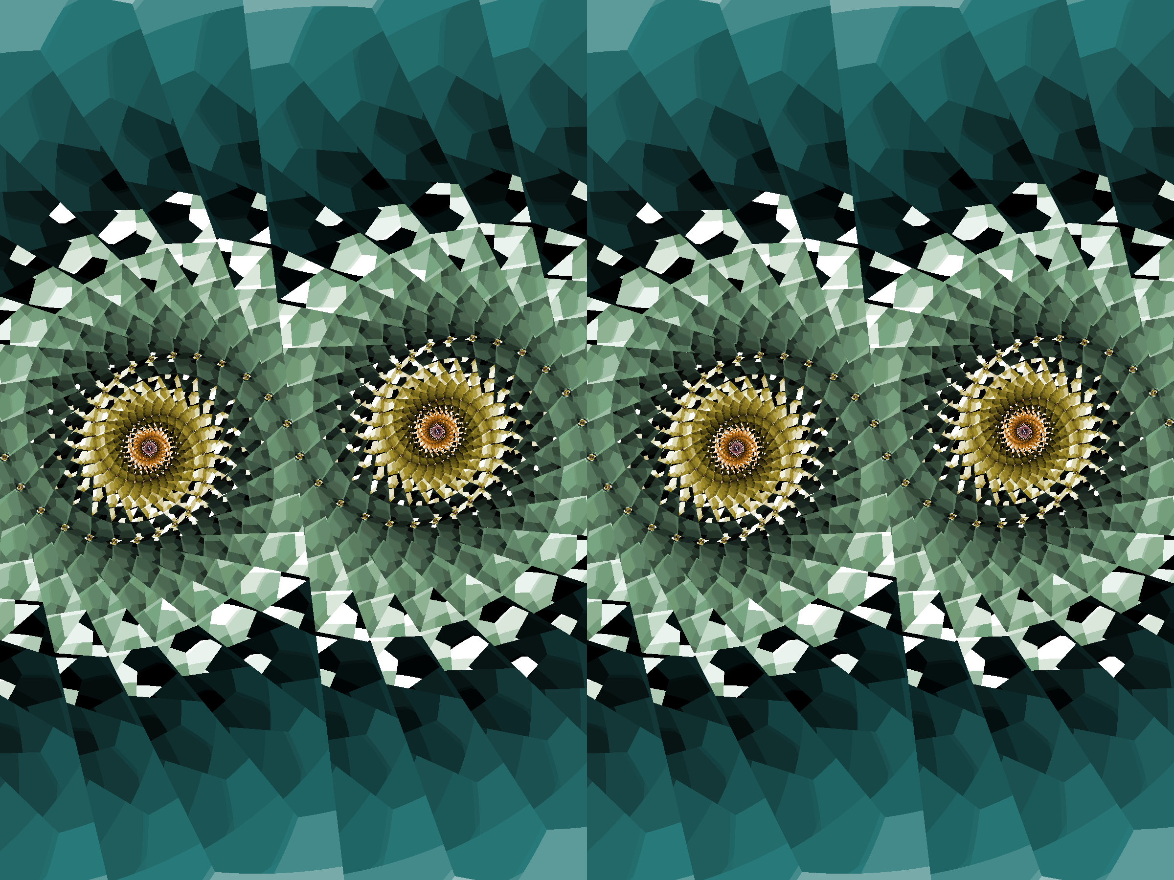 Hier haben wir BarnsleyJ1 als Formel gewählt. Alle Bilder auf dieser Seite sind mit der gleichen Formel im gleichen Ausschnitt und mit den gleichen Parametern gerechnet, einzig die Farben sind jedesmal anders.